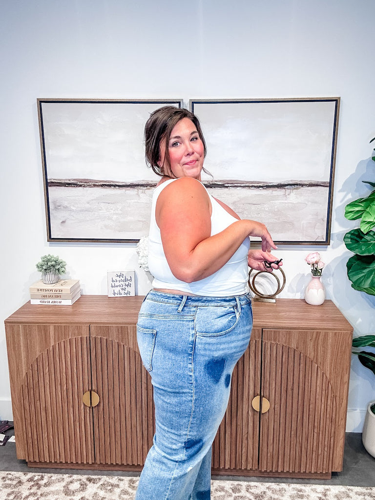 True To Size. Heather is wearing a 11/30. She is a size 9/29 in Judy Blue jeans. Anna is wearing a size 0 and wears a size 0 in Judy Blue's. Abbie is wearing a 2XL.