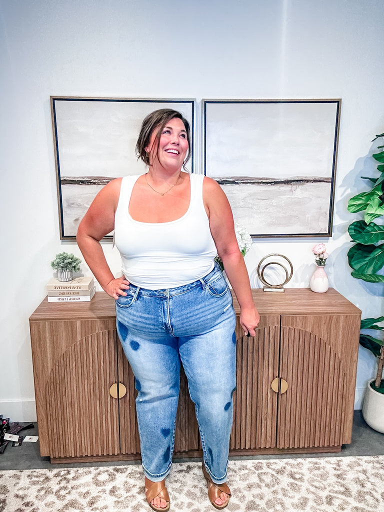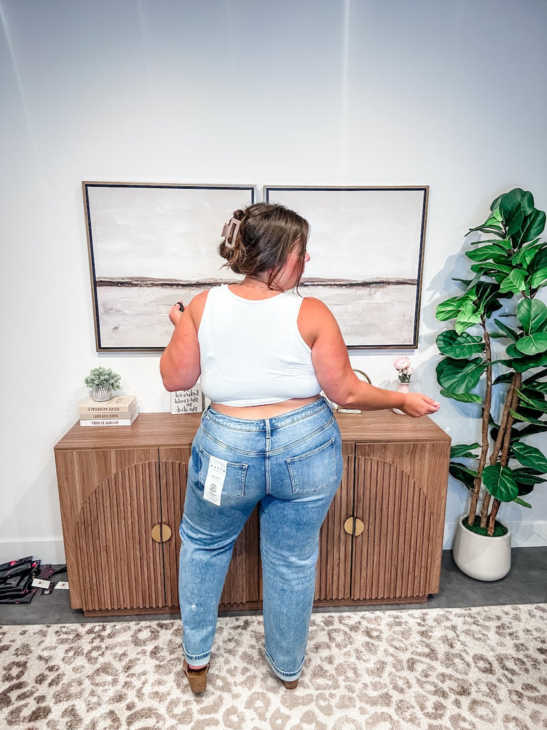 Fall in love with your denim all over again with the Mid Rise Fit-Boyfriend Heart Shade Jeans. Designed with a flattering 10 ¼" rise and a relaxed boyfriend silhouette, these jeans strike the perfect balance between comfort and cool. The cuffed hem adds a playful touch, but can be released for extra length and styling versatility. With a hint of stretch thanks to the cotton-poly-lycra blend, these jeans move with you while keeping their shape all day. Perfect for casual days, coffee runs, or styling up with heels for a night out.