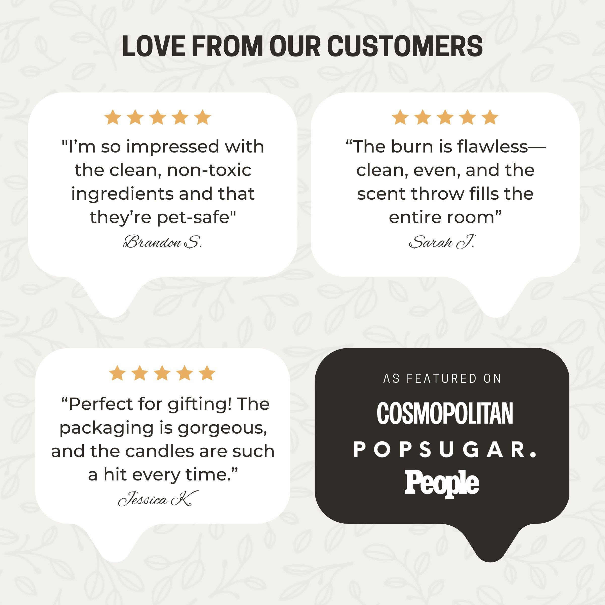 Elevate your atmosphere with our hand-poured candles made from 100% soy wax and infused with essential oils. Each scent is thoughtfully crafted to evoke cozy memories, fresh starts, or a little escape—right from the comfort of your space. Clean-burning and long-lasting, they make the perfect gift or personal treat.