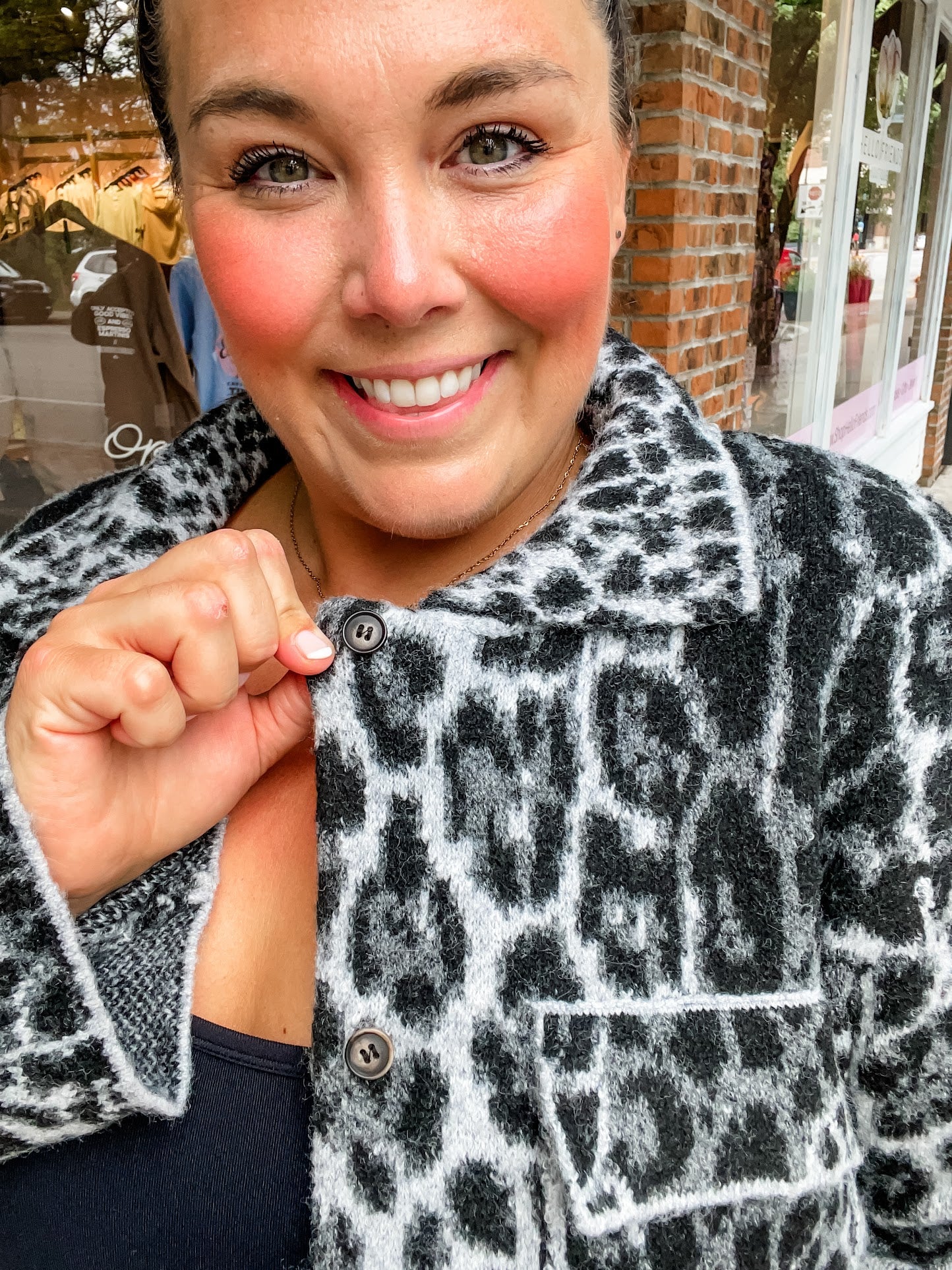 Add a fierce edge to your layering lineup with Fierce Frequency Jacket. This long sleeve leopard print knit jacket features a classic button-down front, functional patch pockets, and a true-to-size fit. The lightweight knit blend offers warmth without the bulk, making it the perfect statement piece for transitional weather. Bold, cozy, and effortlessly coolāthis is your new go-to for turning heads and staying comfy.