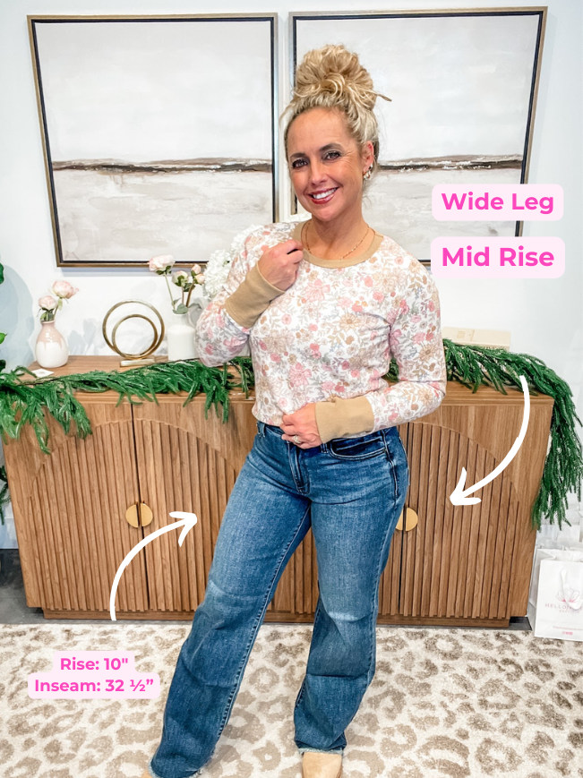 Bring a little retro into your everyday wardrobe with the Judy Blue Mid Rise Wide Leg Jeans with Tint. Designed with comfort in mind, these jeans blend cotton, polyester, and spandex for just the right amount of stretch and durability. The 10” mid rise flatters your waistline while the 32.5” inseam creates a long, leggy silhouette that’s both timeless and on-trend.