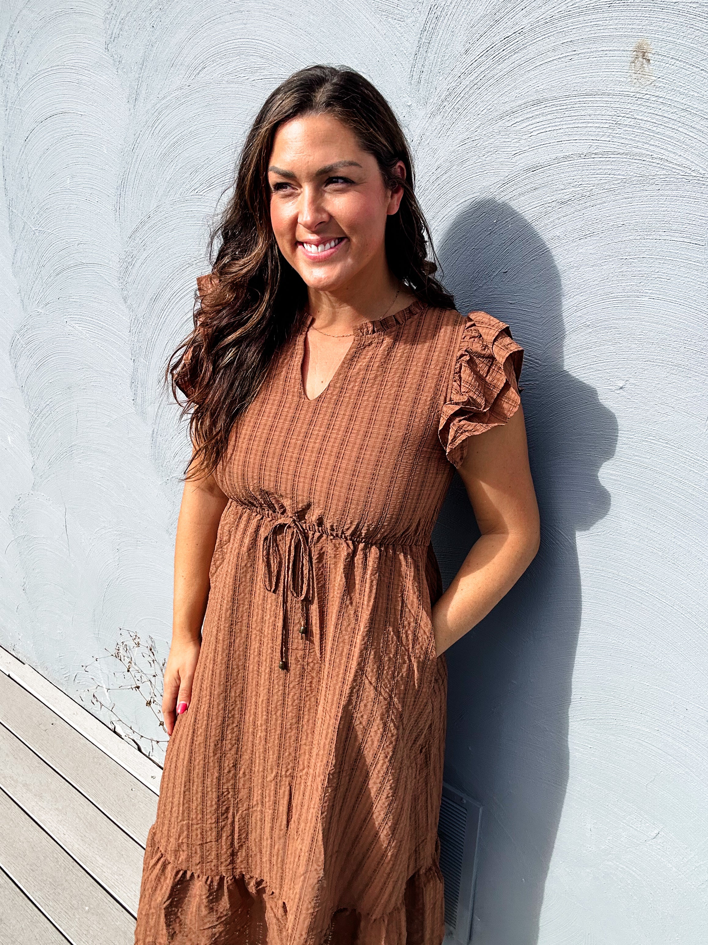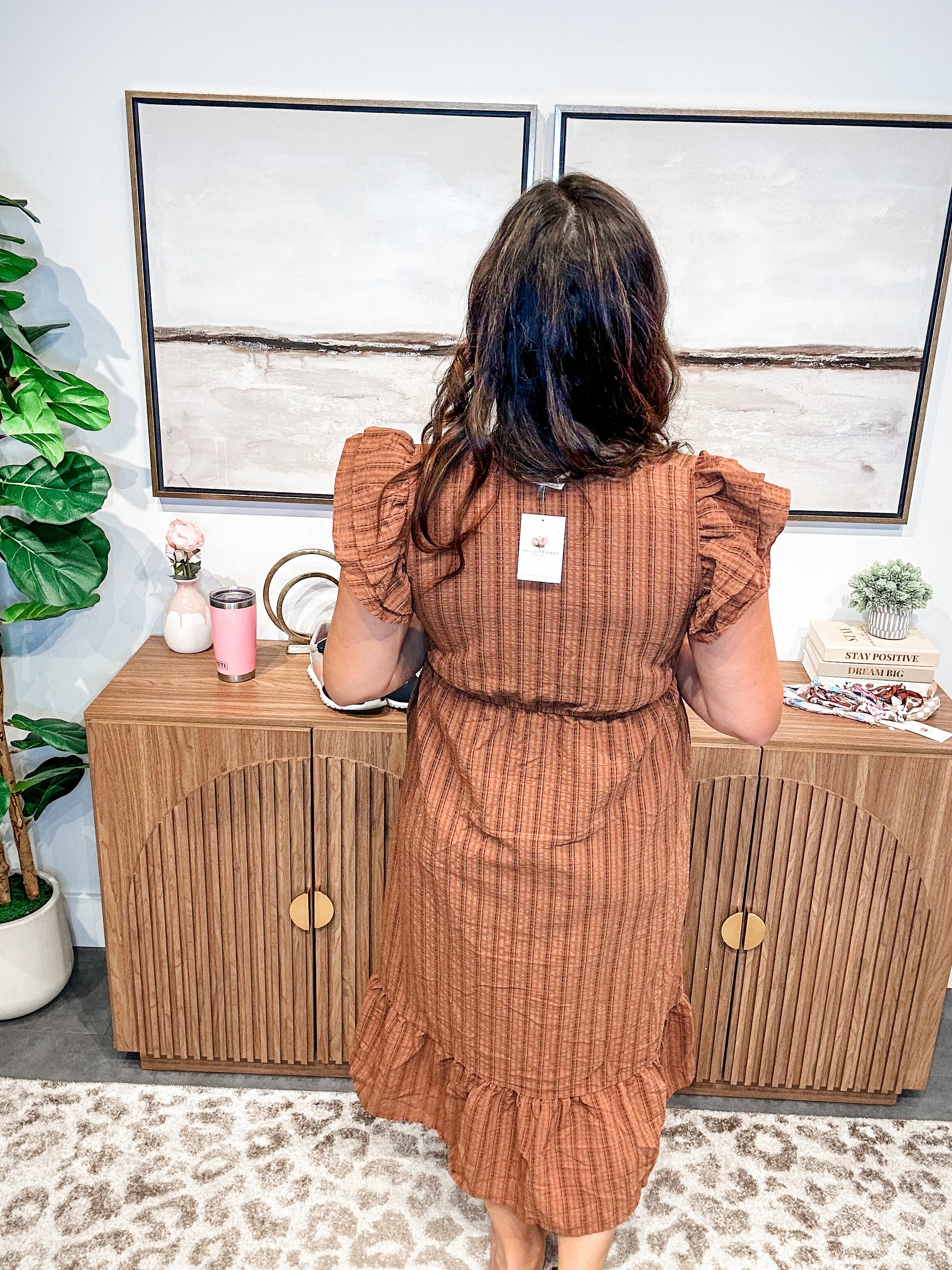 Classic charm meets effortless comfort in the Autumn Grace Ruffle Midi Dress. Designed with a flattering split V-neckline and double ruffle short sleeves, this dress offers a timeless silhouette with playful movement. The soft, stretchy plaid fabric provides all-day comfort while maintaining a polished look—perfect for transitioning from summer to fall.