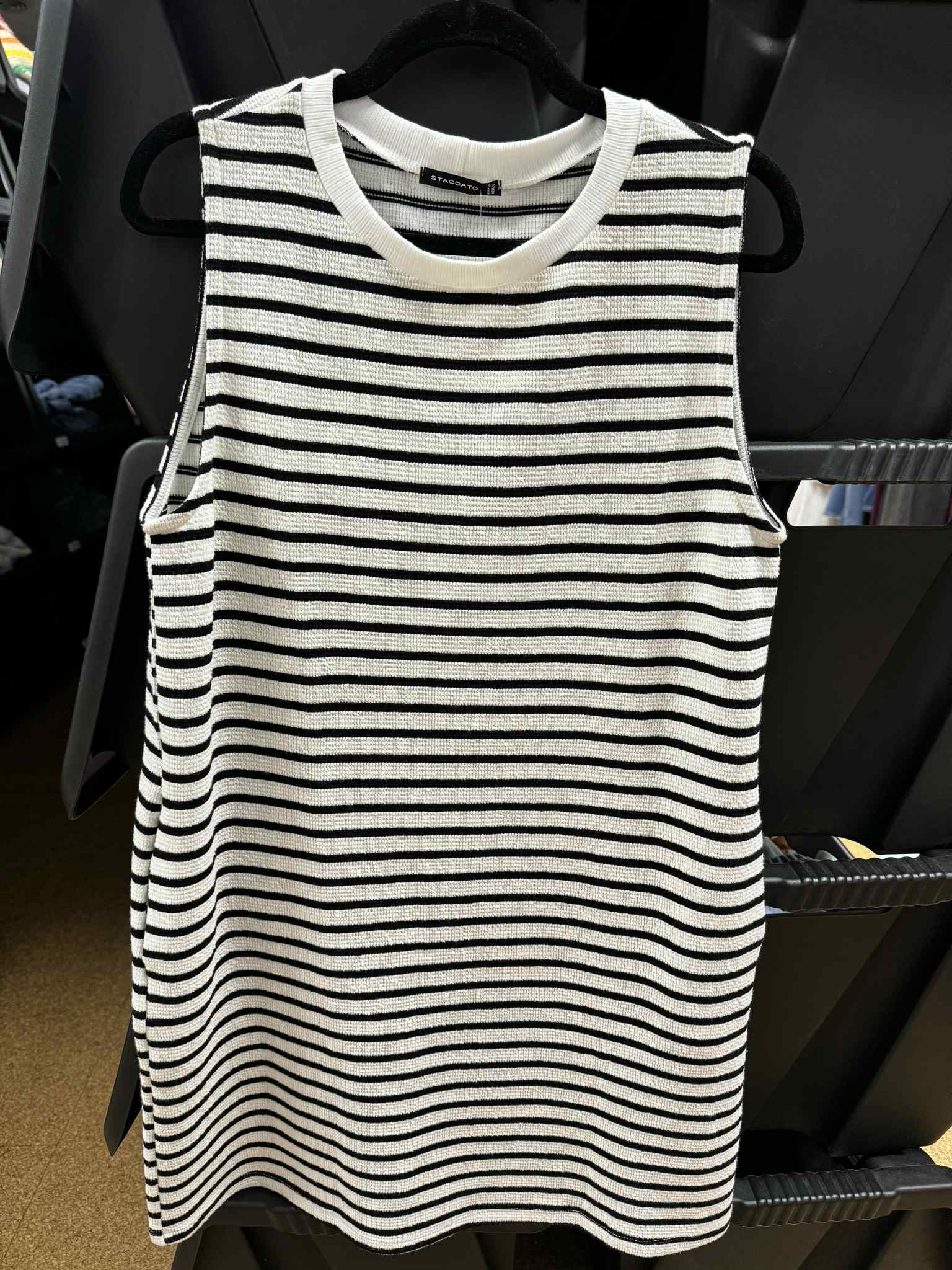 Classic meets effortless in The Coastal Stripe Dress. Designed in a sleeveless crewneck silhouette with clean ivory and black stripes, this comfy, casual midi brings easy style to your warm-weather wardrobe. A relaxed fit with hidden side pockets makes it as practical as it is polished—whether you're beach-bound or brunch-ready.