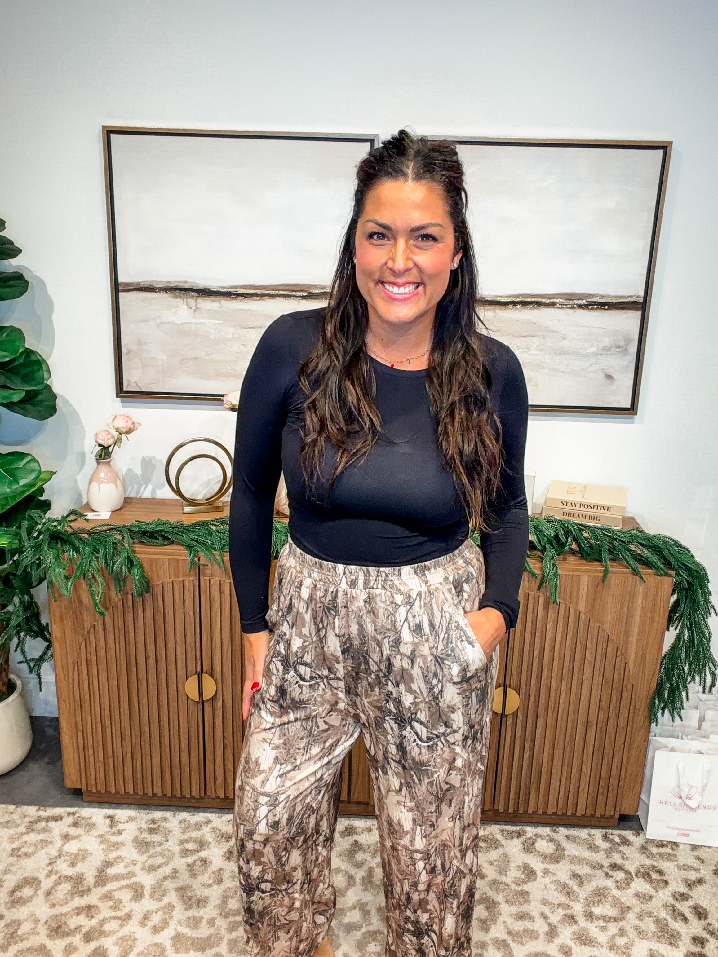 Playful Dark Camo Print: Adds a subtle, edgy touch to your loungewear rotation.