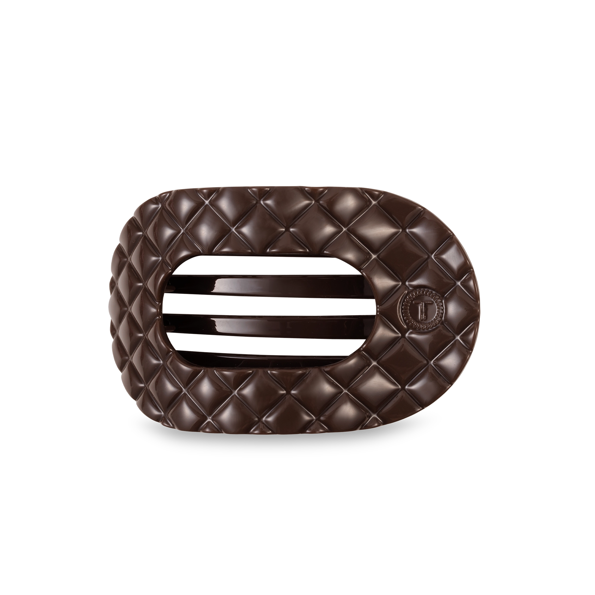 Stay effortlessly chic with the Truly Taupe Quilted Medium Flat Round Hair Clip. Designed with TELETIES’ lay-flat back, this clip lets you lean, lounge, and relax without the usual bulky hair accessory getting in the way. Perfect for road trips, desk days, workouts, or cozy couch time—comfort meets style in every angle.