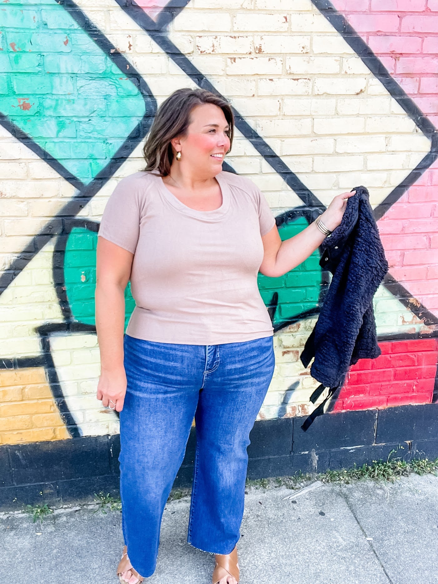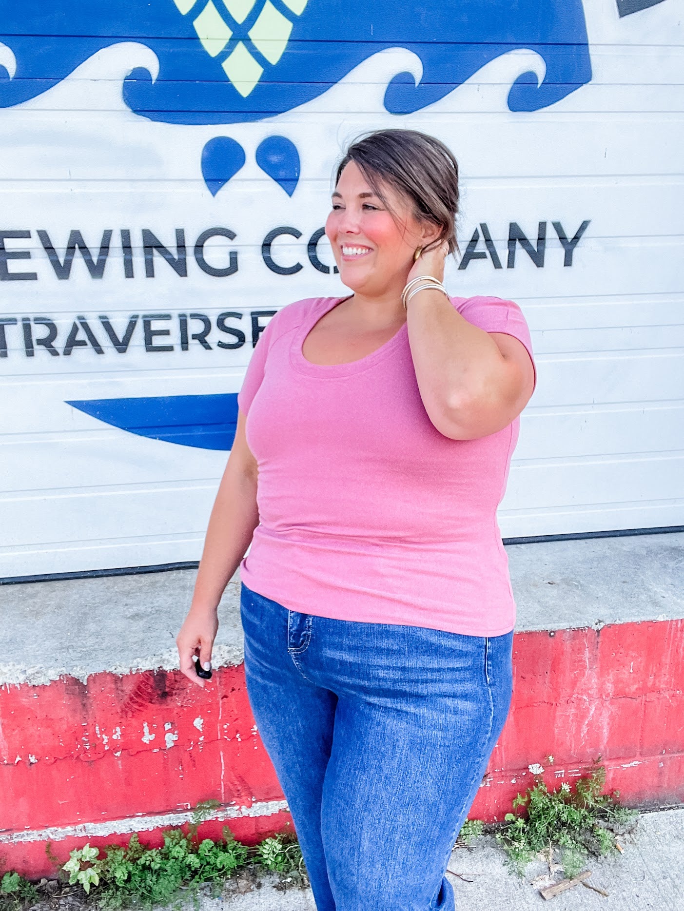 Meet your new go-to: the Short Sleeve Round Neck Basic Top. With its timeless crew neckline and easy short sleeves, this top is the definition of effortless style. Designed with a relaxed yet flattering fit, it’s the perfect piece to wear on its own or layer under your favorite jackets, cardigans, and shackets.