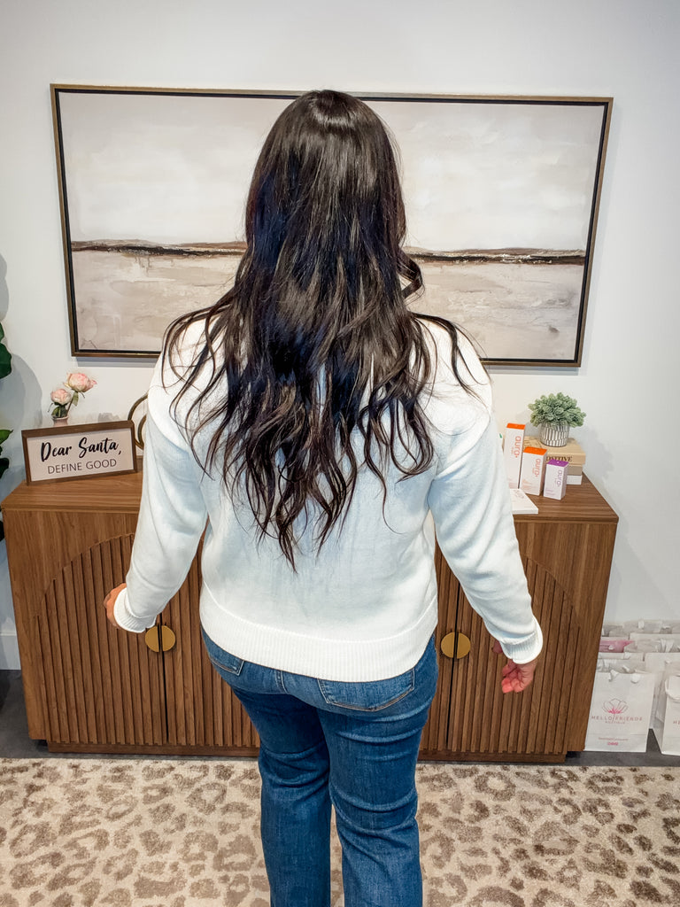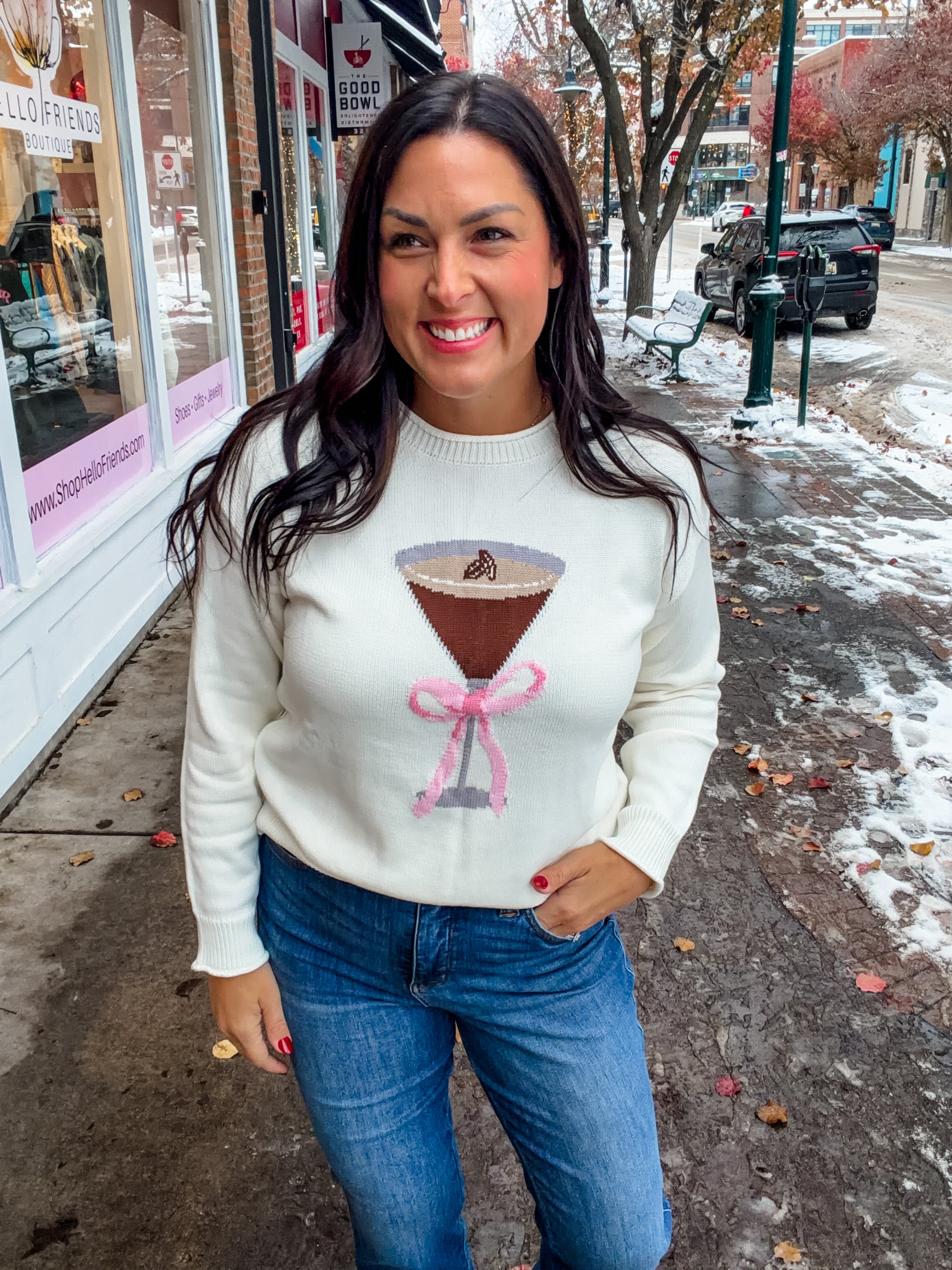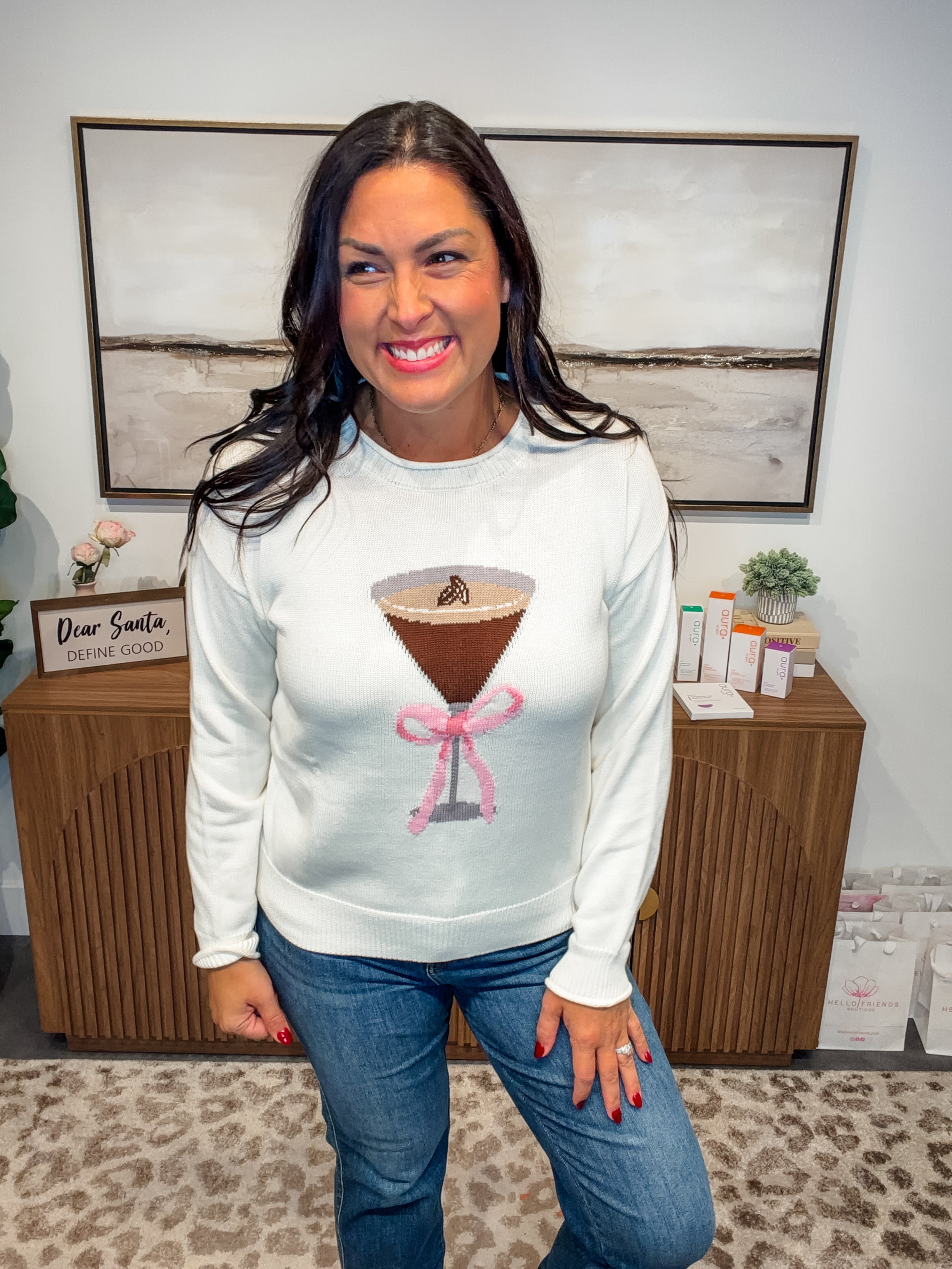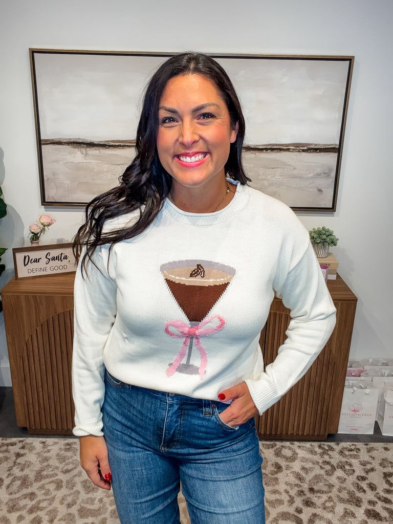 Raise a glass to cozy-chic vibes! Our Chic Sips Espresso Martini Sweater is the perfect lightweight pullover for sipping, socializing, or simply lounging in style. Featuring a soft rolled neckline, long sleeves, and a playful espresso martini graphic, it’s a fun twist on your everyday sweater. Ideal for layering or wearing on its own, this top keeps you comfortable while adding a touch of personality to your look.