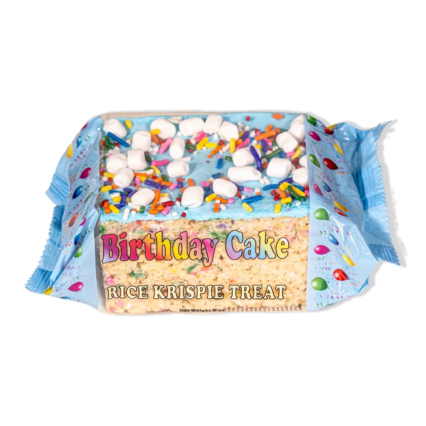 This Treat is always one of our best sellers. The base contains Tahitian vanilla paste, natural birthday cake flavor, and colorful sprinkles. The treat is topped with blue chocolate ganache, more sprinkles, and tiny marshmallows. **GLUTEN FREE, NUT FREE**