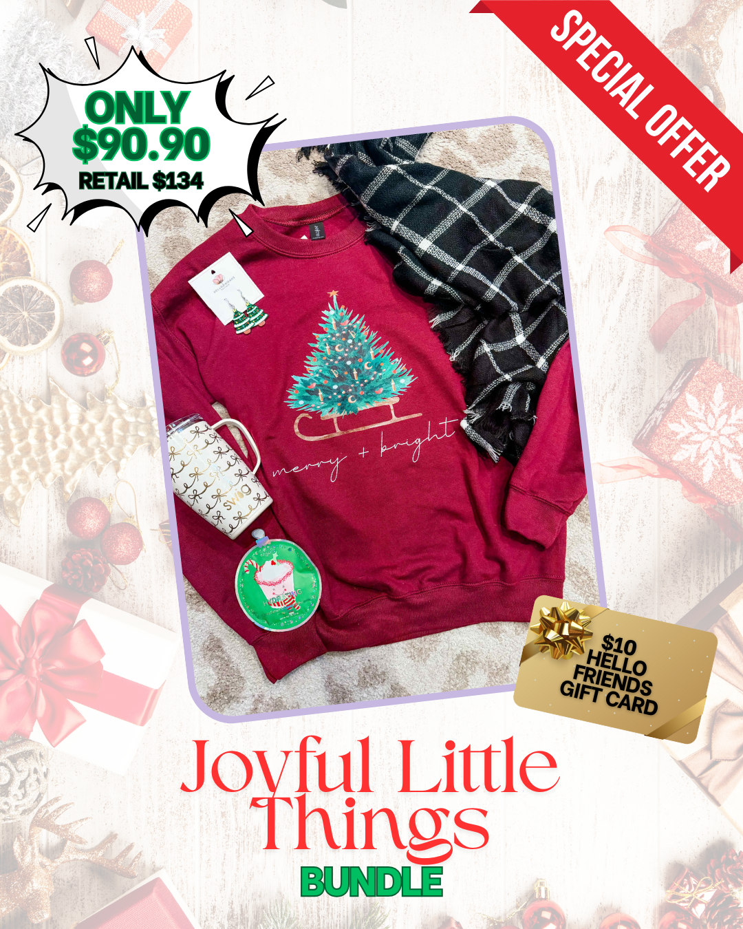 Give the gift of cozy holiday magic — or treat yourself to a little Christmas joy! Our Joyful Little Things Bundle is packed with festive favorites that make the season feel extra special. Thoughtfully curated with a mix of cozy, cute, and giftable goodies, this bundle brings together our best holiday must-haves at an amazing value.