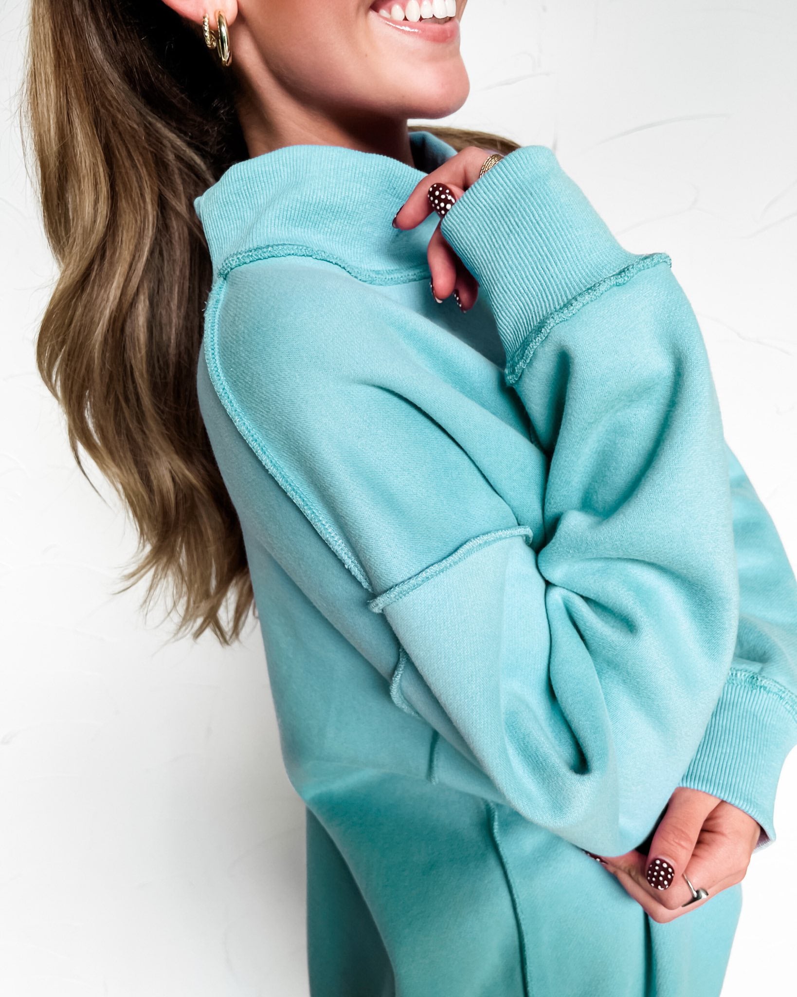 The Mock Neck Sweatshirt is your new go-to for chilly days and relaxed weekends. Designed with a slightly oversized fit, this sweatshirt features a soft fleece interior that wraps you in all-day comfort. The chic mock neck adds a touch of style while keeping you warm, and the simple, versatile colors make it effortless to mix and match with your favorite leggings, jeans, or joggers.