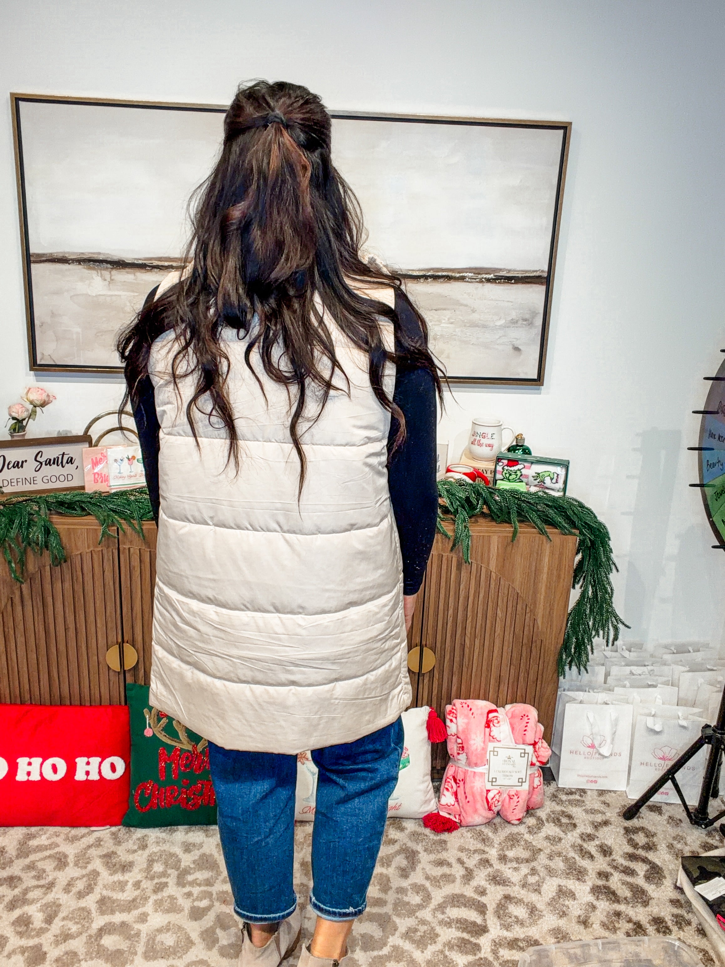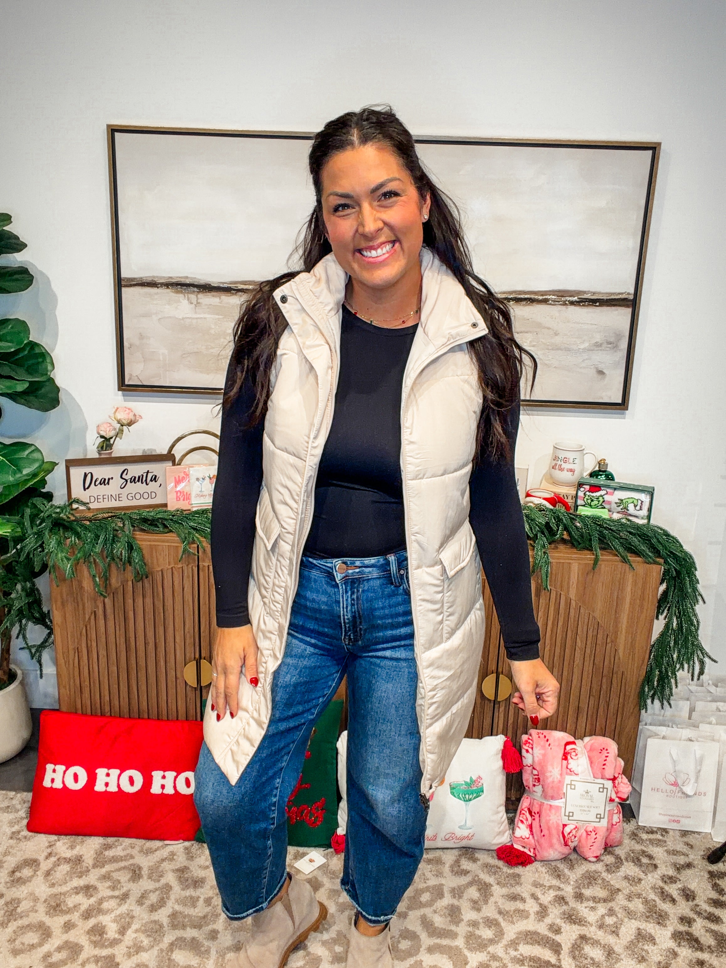 Longline cream vest for a chic, elongating fit
