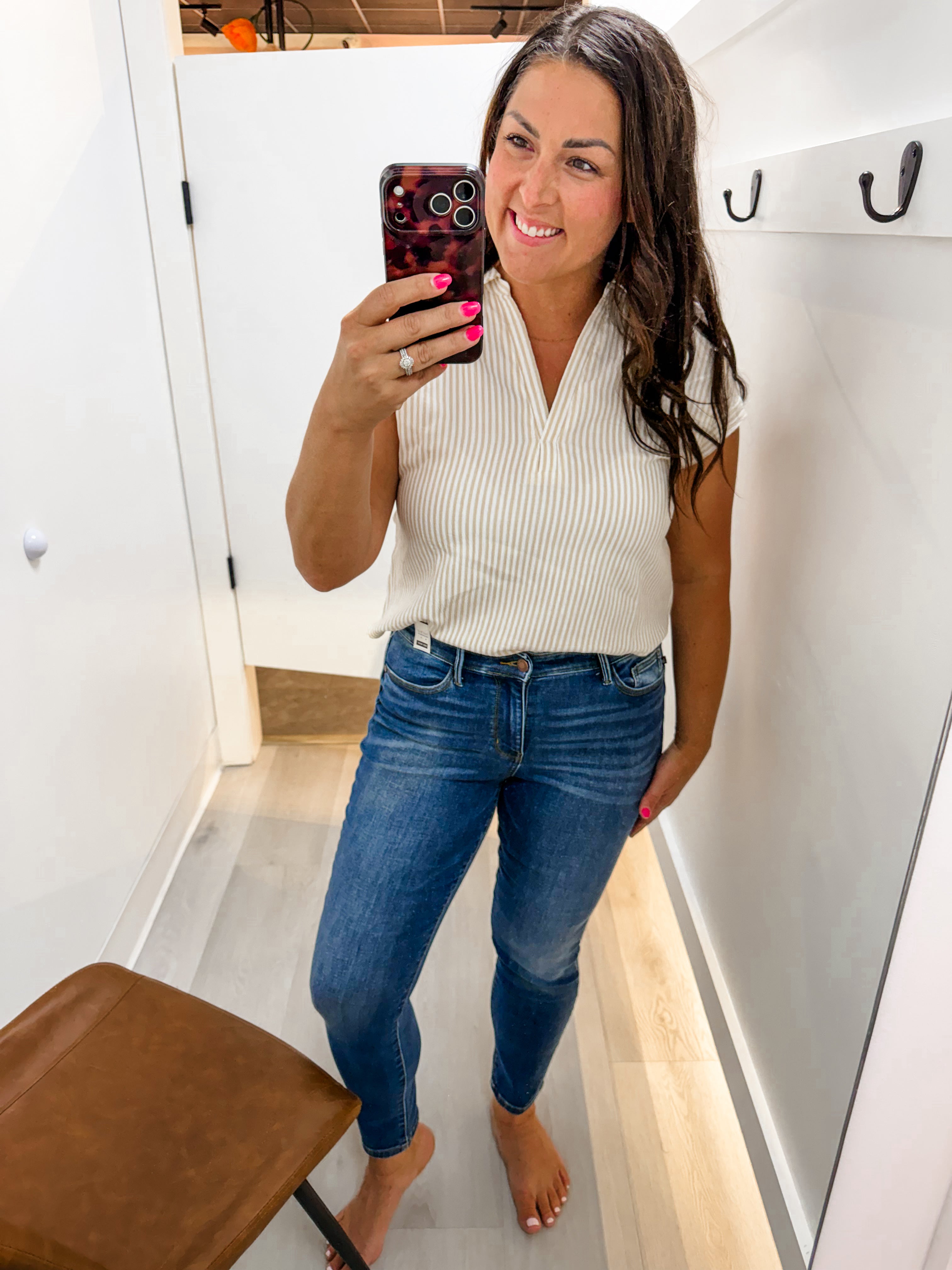 We love everything about this top. The collared v-neckline is so flattering and gives it that classic shirt look, the short cuffed sleeves add a cute, structured detail, and the relaxed fit keeps you comfortable all day long. The woven stripe fabric has such a beautiful, elevated quality that makes it look way more expensive than it is. Whether you're styling it for a casual day at the office, brunch with friends, running errands, or a weekend getaway, this top does it all. Tuck it into jeans or trousers for a polished look, wear it loose over shorts for a laid-back vibe, or layer it under a blazer for something more dressed up. Trust us — this one is going to be on constant rotation!