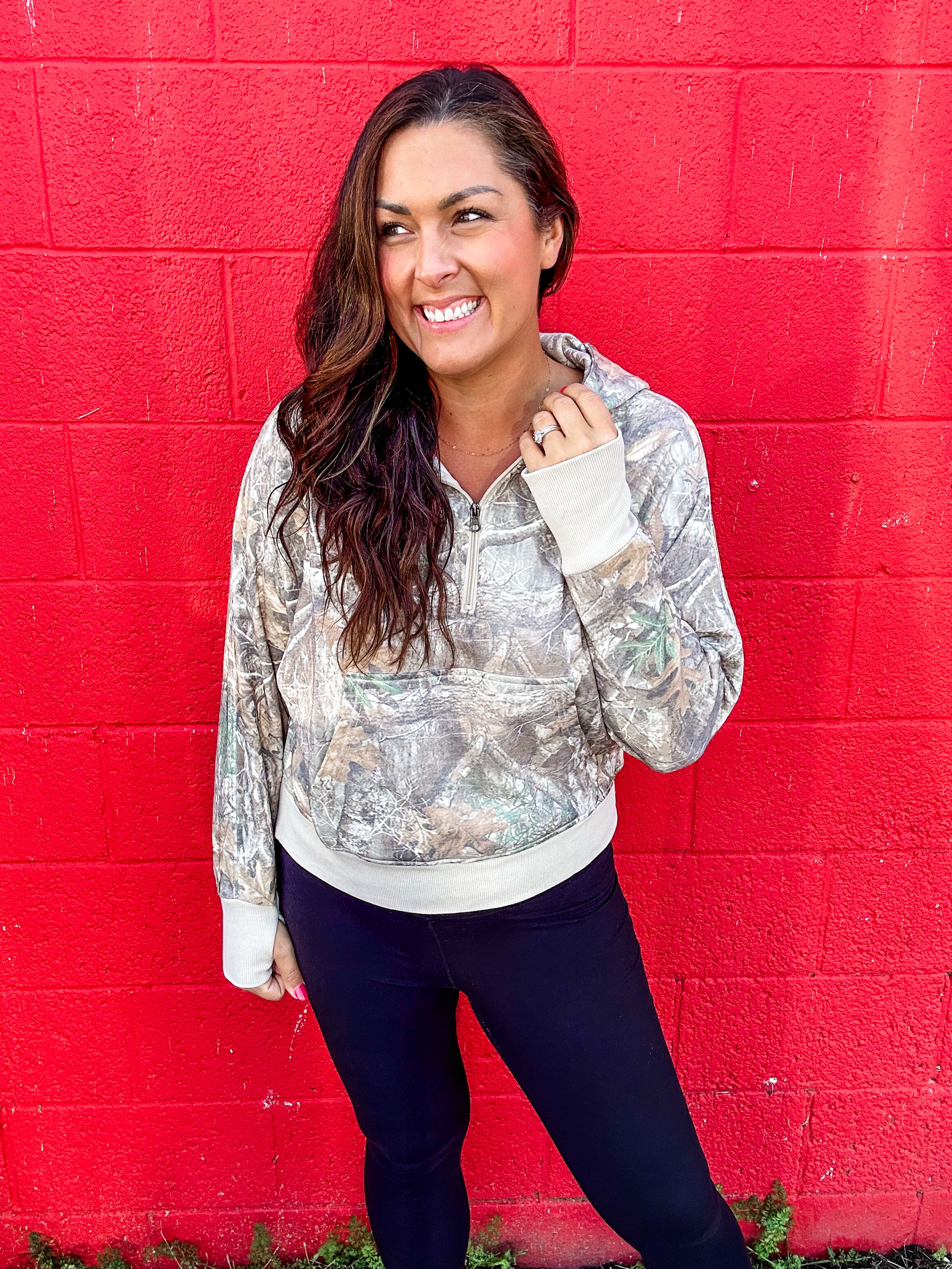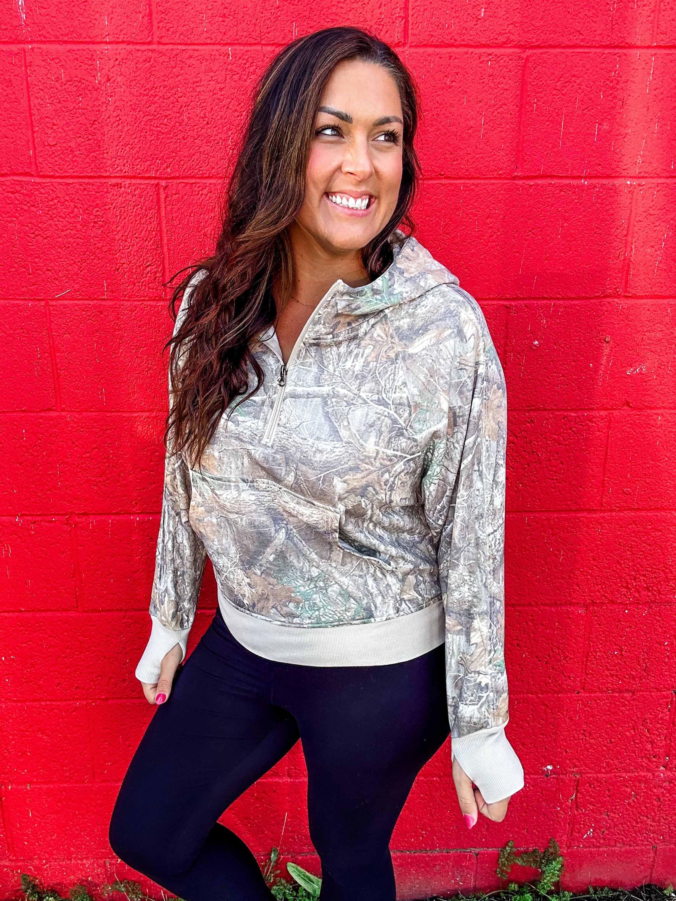 Step into effortless style with our Easy Does It Pullover, featuring playful camo and checker prints for a trendy twist on a classic hoodie. Crafted from soft, high-quality fabric, this semi-cropped pullover hits just right—covering the belly and sitting slightly past the waist. Its relaxed fit makes it perfect for layering, lounging, or running errands in comfort. Thumbholes add a sporty touch while keeping your hands cozy on cooler days. Practical, cute, and effortlessly cool—this hoodie truly does it all!