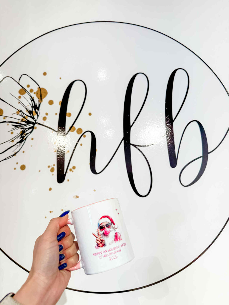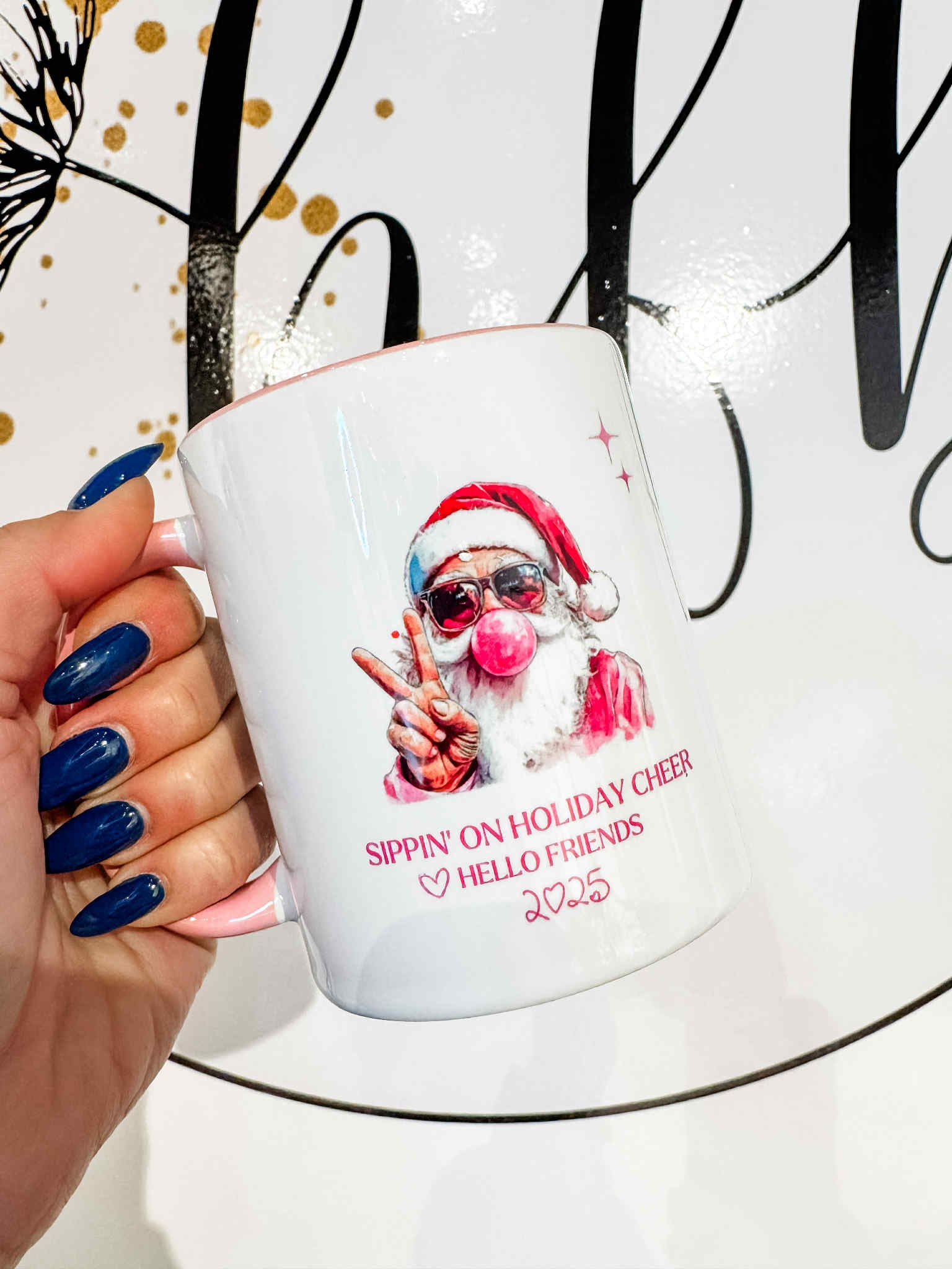 Start your mornings with a festive touch! Our Sippin’ on Holiday Cheer Mug features a playful Bubble Gum Santa 2025 graphic and the cheerful phrase “Hello Friends, Sippin’ on Holiday Cheer”. With a vibrant color-accent handle and rim, this 11oz mug is perfect for cozying up with cocoa, coffee, or your favorite holiday drink.