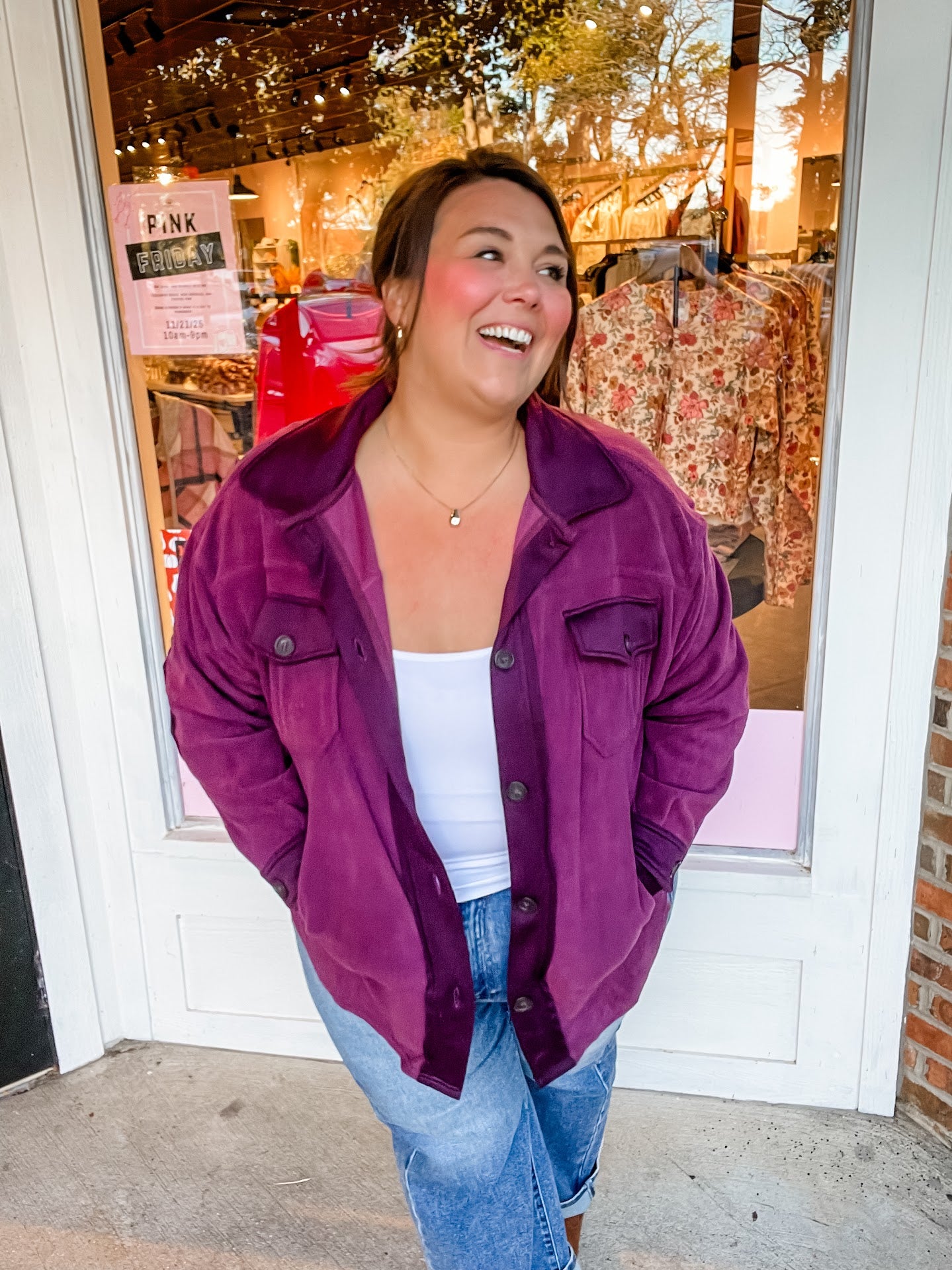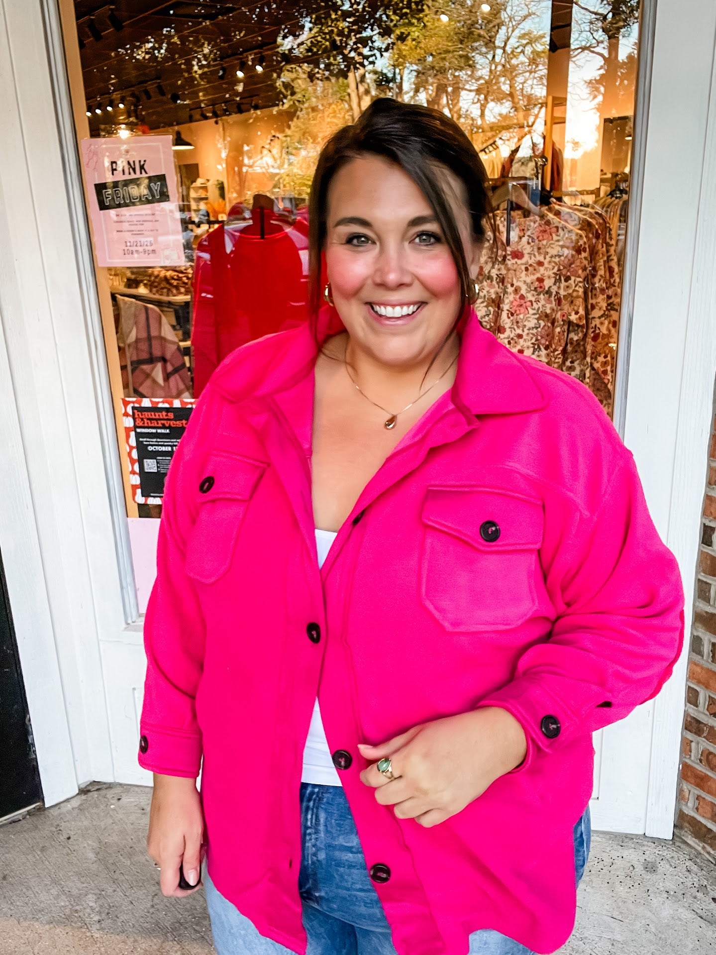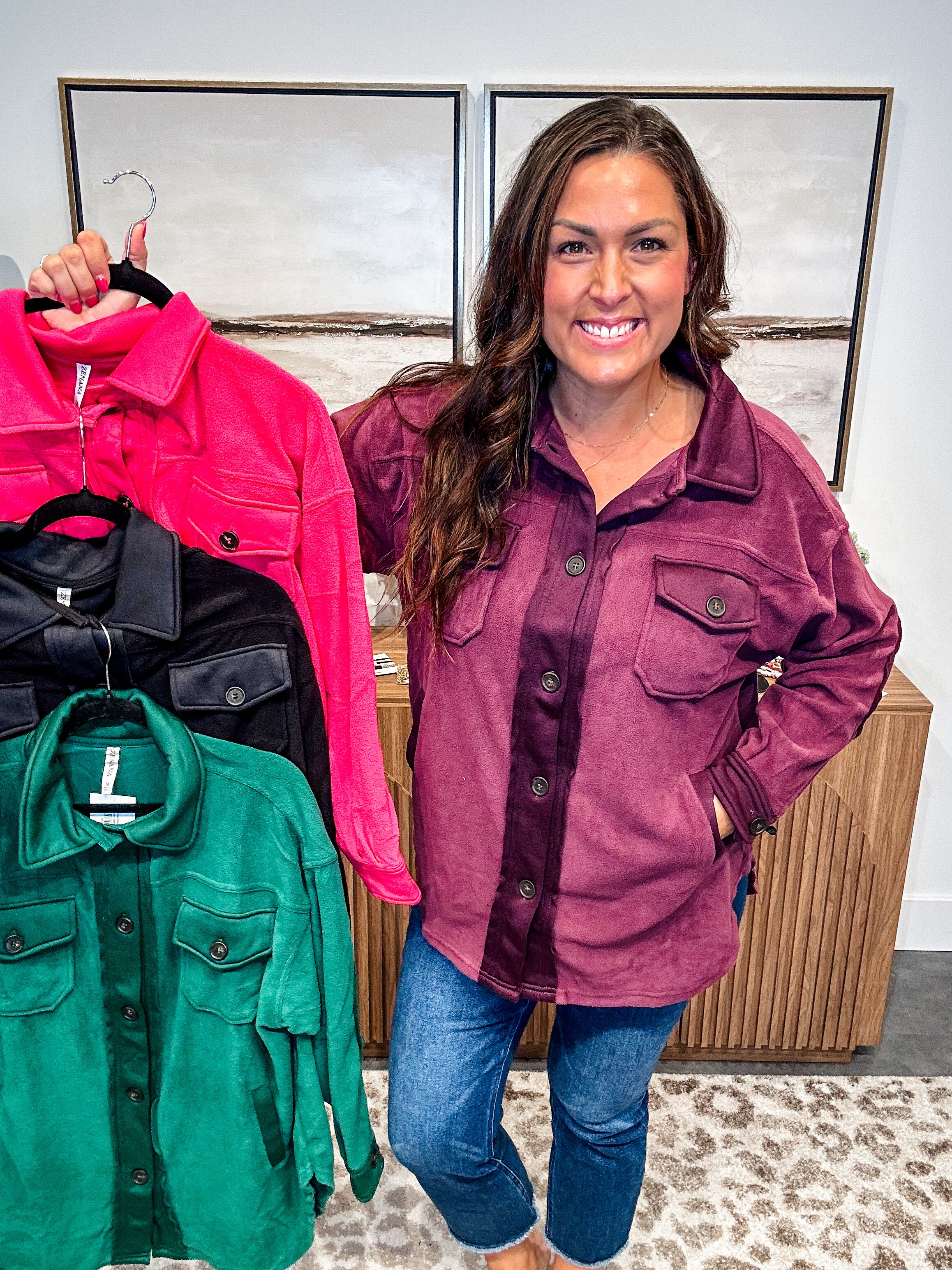 Meet your new go-to layering piece: the Cozy Comet Fleece Shacket. Soft, oversized, and effortlessly stylish, this shacket combines the warmth of fleece with the versatility of a button-up jacket. Featuring elbow patches, button cuffs, and a hi-low hem, it’s perfect for casual weekend adventures, coffee runs, or layering over your favorite tees and sweaters.