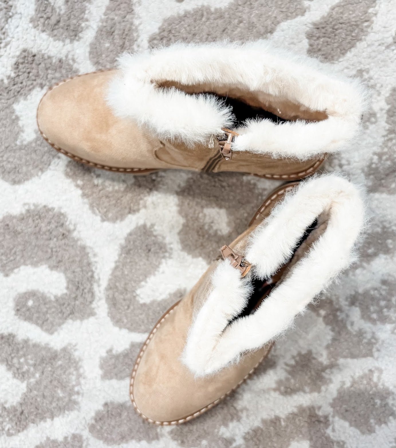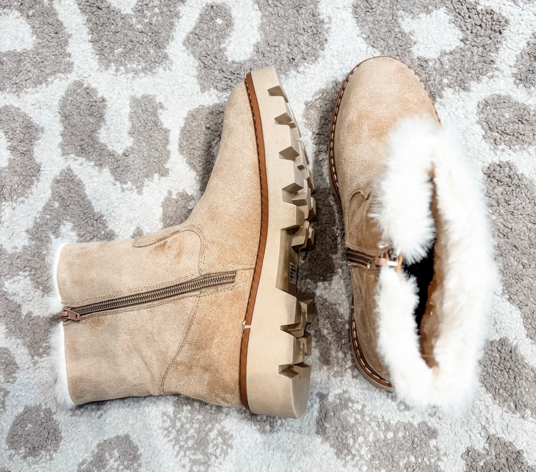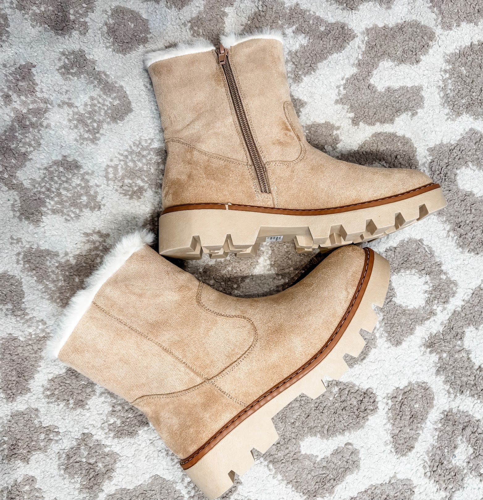 Step into cozy, chic style with our Marlo Sand Suede Boots! Crafted with a soft suede leather upper and a plush faux fur lining, these boots keep your feet warm while delivering timeless style. The interior zip closure makes them easy to slip on and off, and the stockman heel adds just the right amount of lift for everyday wear.
