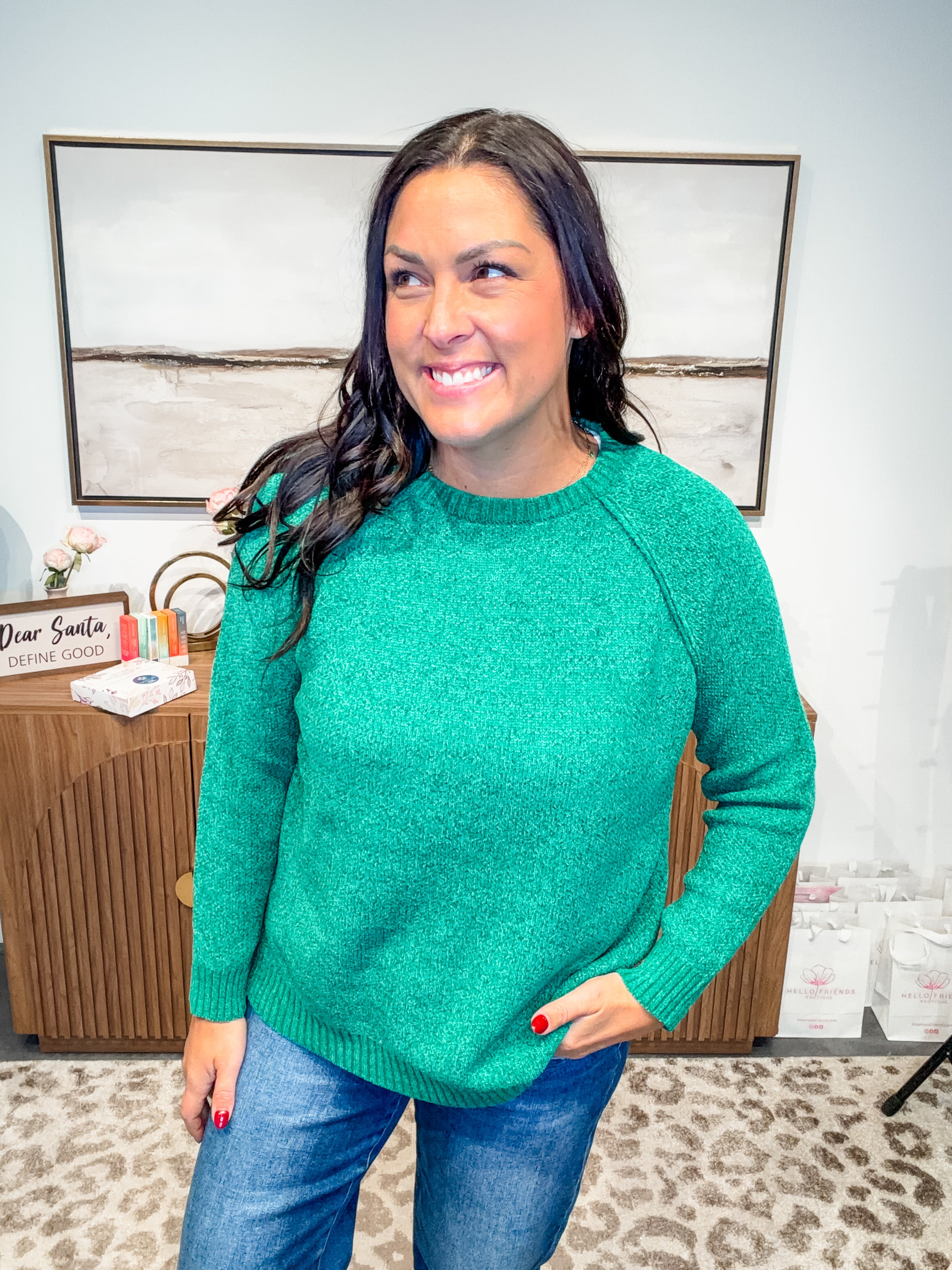 The round neck and raglan sleeves give it an effortless, laid-back vibe while keeping your look polished. Whether paired with denim, leggings, or skirts, this sweater brings cozy elegance to every outfit.