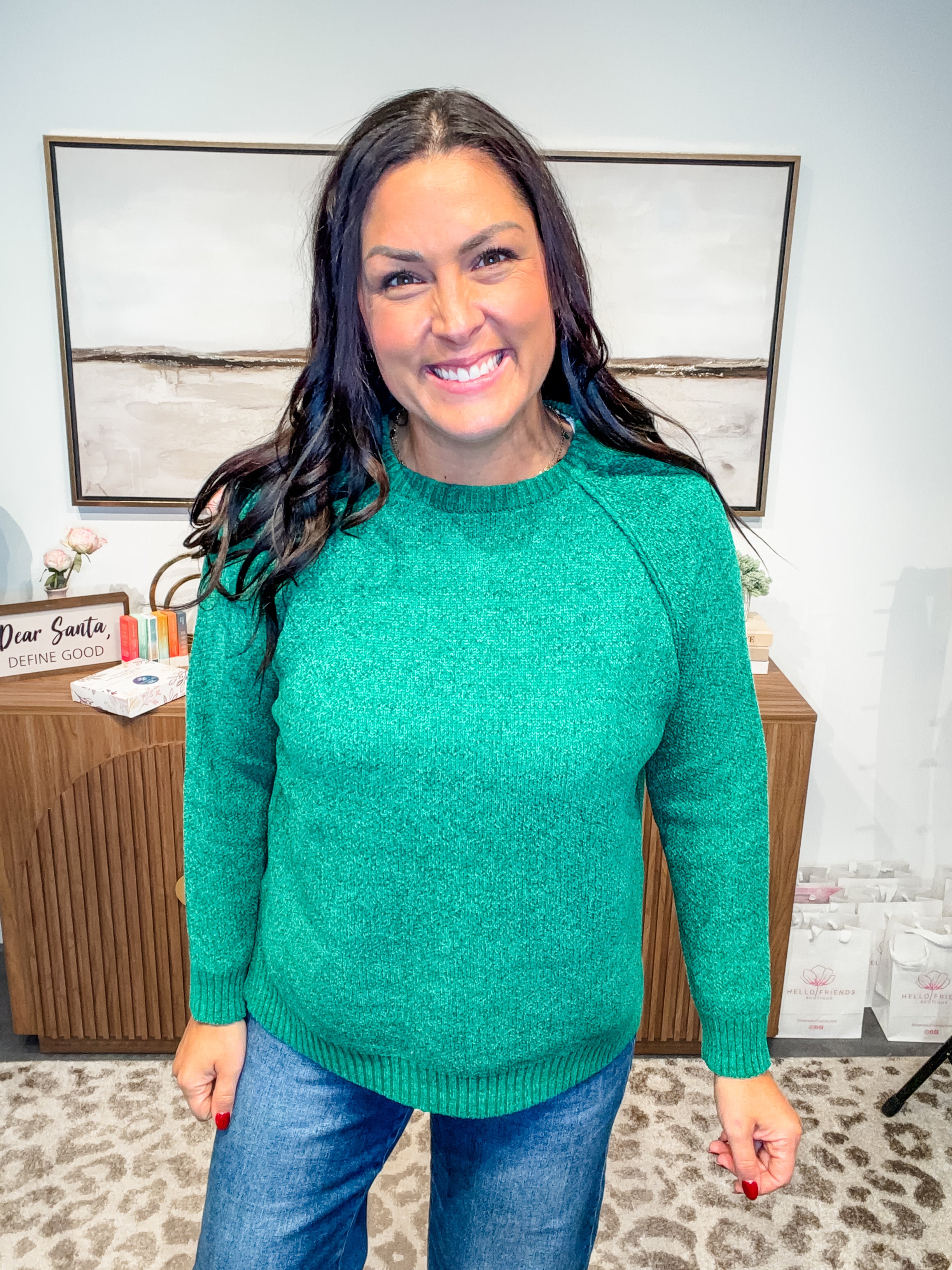 Wrap yourself in luxurious softness with the Velvet Sky Raglan Sweater. Made from a heavyweight chenille blend, this sweater delivers plush comfort with a relaxed yet flattering fit. Perfect for cozy nights in, casual weekend outings, or layering for chilly mornings, its rich texture and quality construction make it an instant wardrobe favorite.
