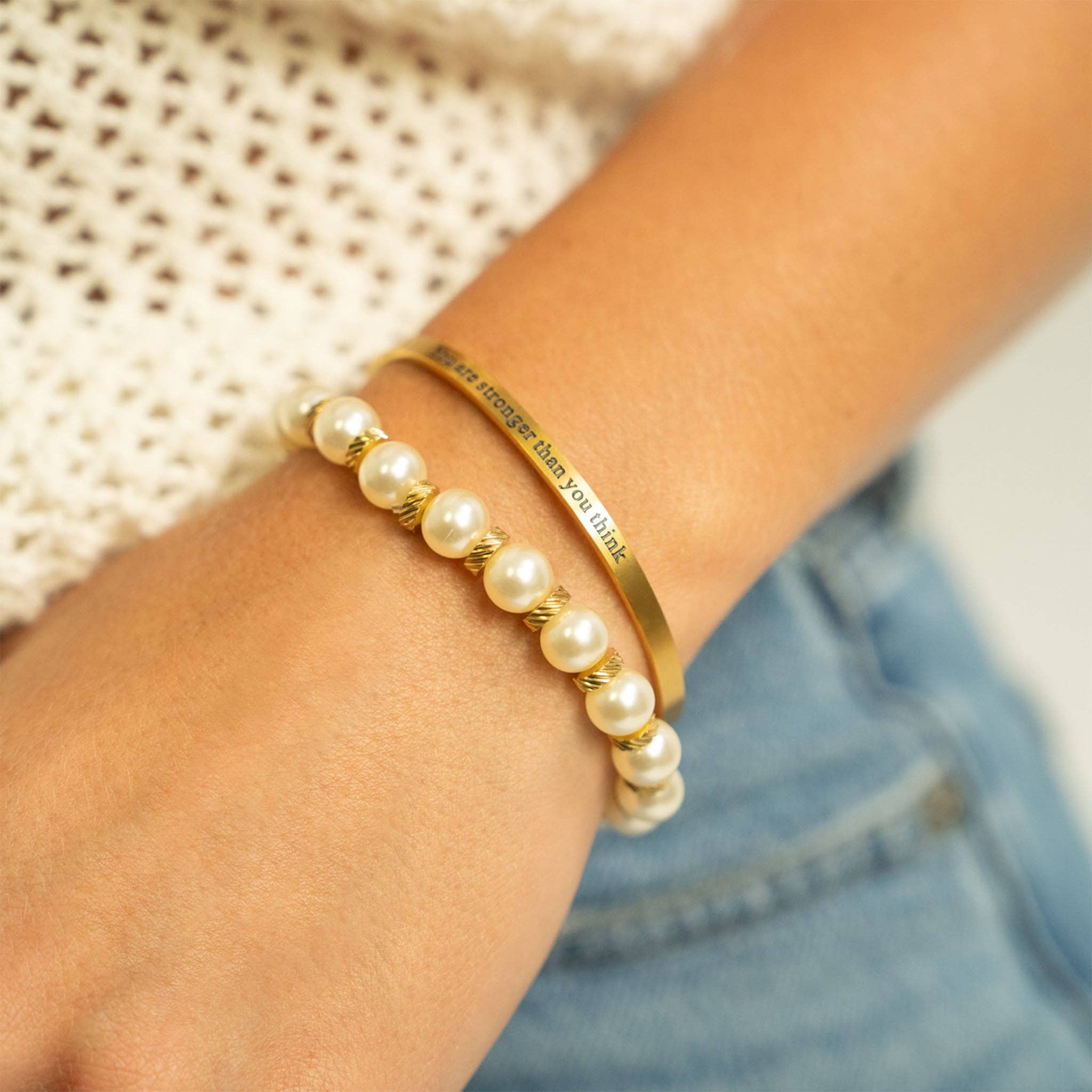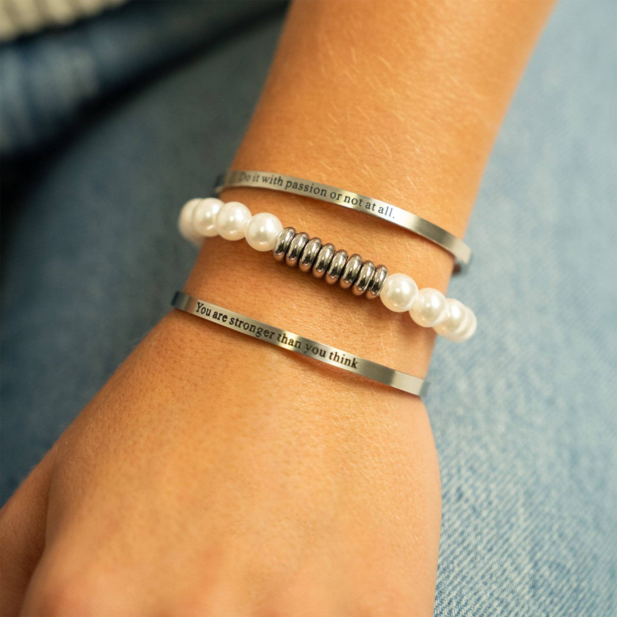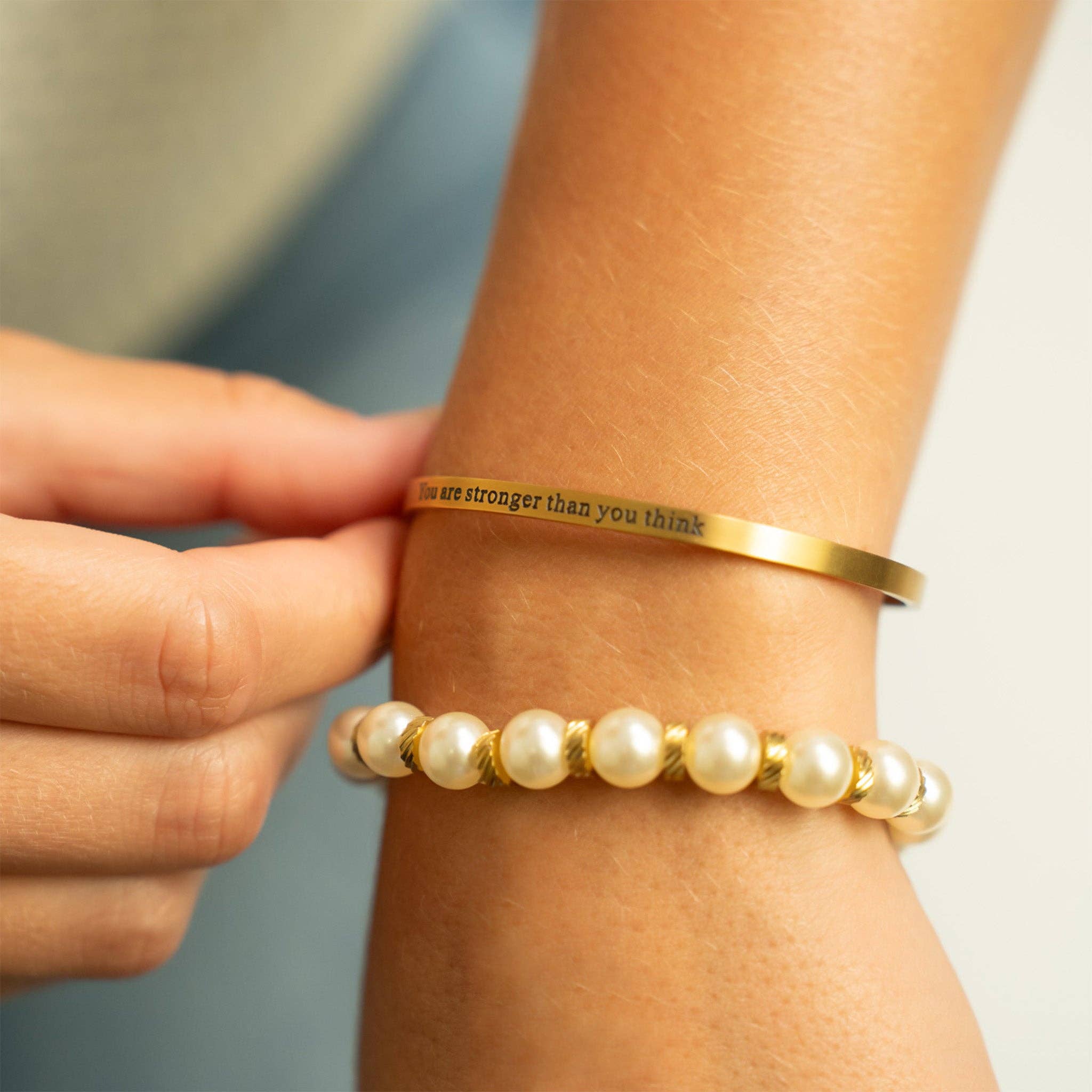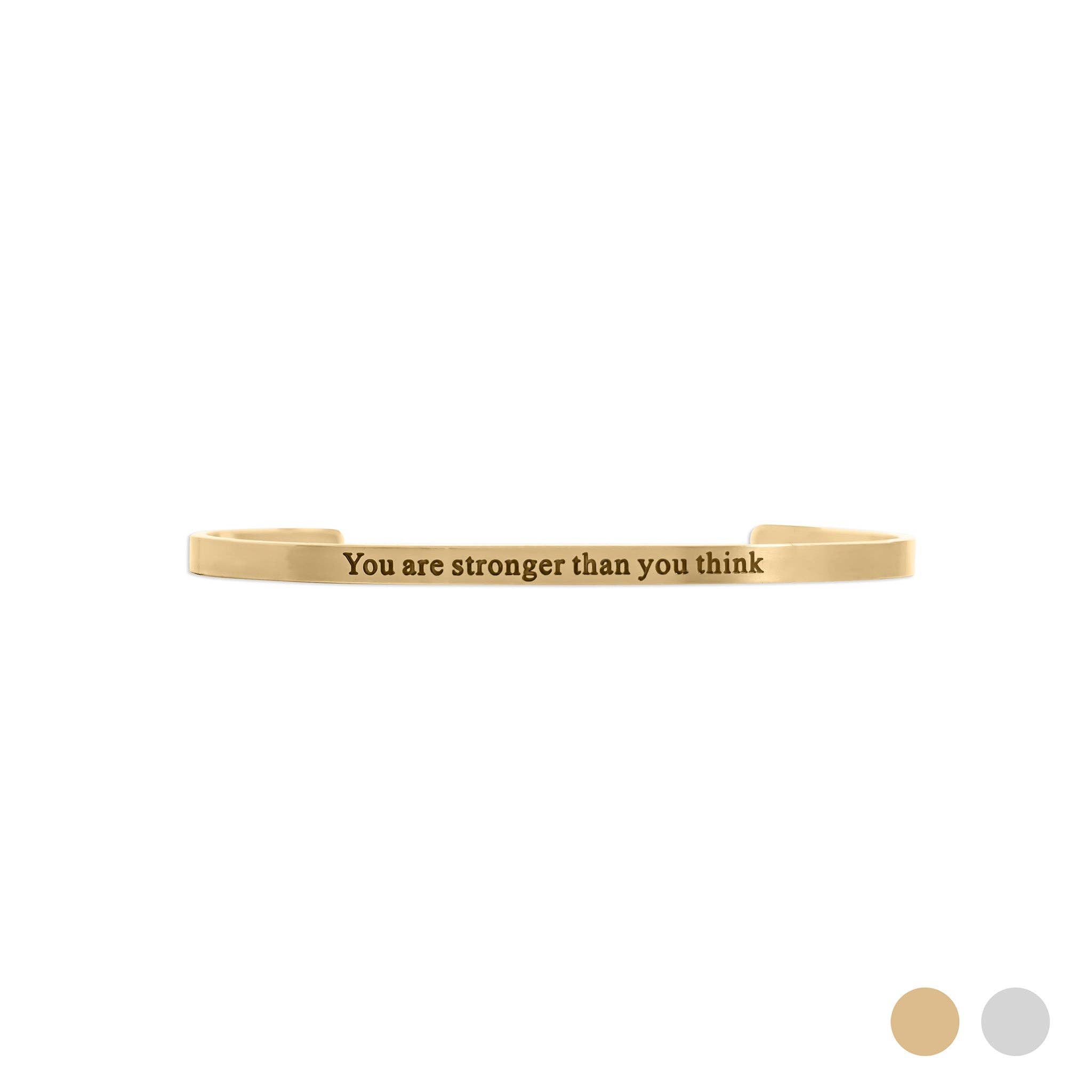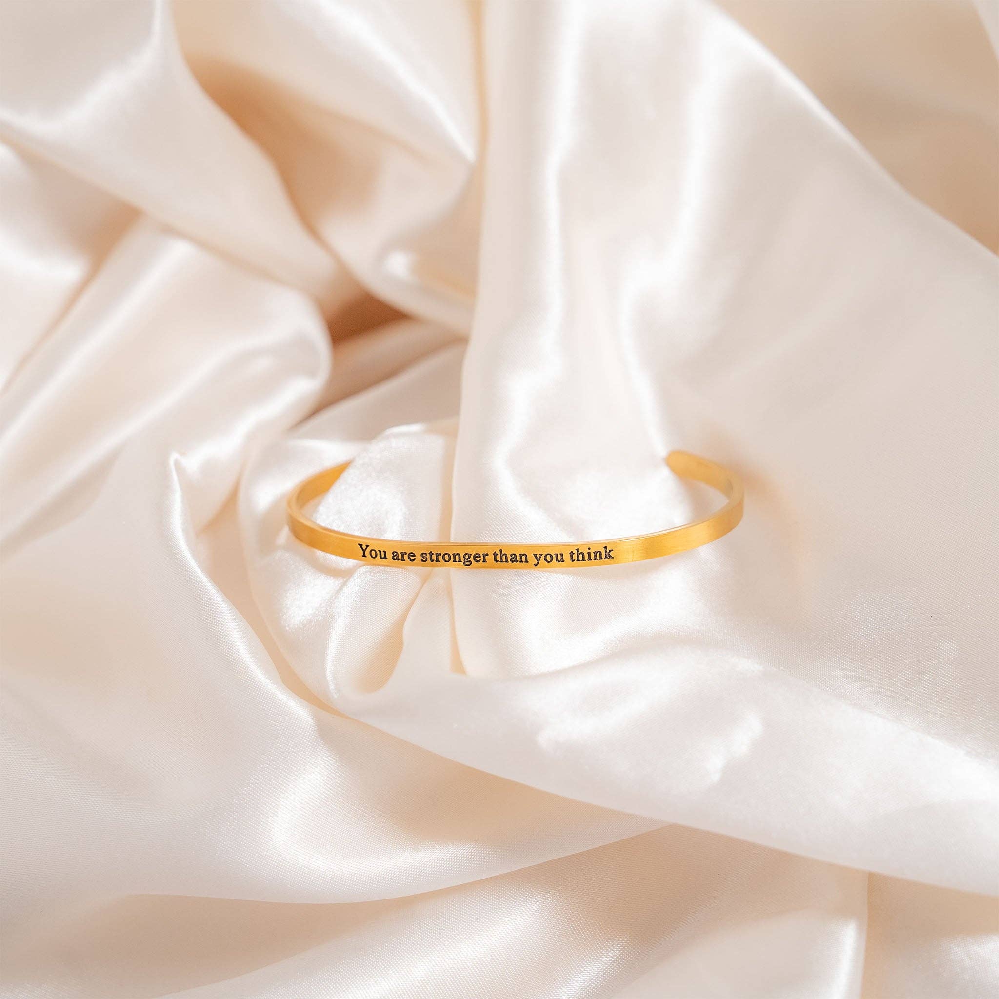 Keep encouragement close at hand with this empowering engraved bracelet. Crafted from high-quality stainless steel and finished with a radiant 18K Gold PVD coating, it’s a timeless piece designed to inspire resilience and confidence every day. ✦ 100% Waterproof, Non-tarnish, Hypoallergenic ✦ Quality That Lasts ✦ Designed for All Skin Types ✦ Perfect for Every Budget - PVD COATING - We use the process of PVD Coating our 18K Gold jewelry over 316L surgical grade stainless steel for a non-tarnish, hypoallergenic, polished finish that will hold up best to everyday wear and will never turn your customer's skin green. Approx. Dimensions: 2.5" x 2" Approx. Width: 3.5mm Approx. Weight: 7.45 grams Same day shipping from Destin, FL before 3:00 PM CST. Questions? Contact us at support@wholesalejewelrywebsite.com